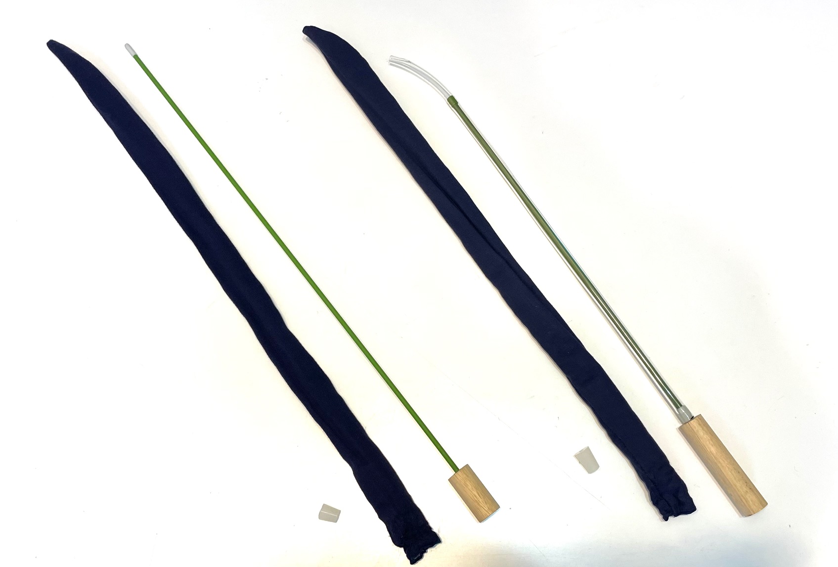 オーボエ族のプッシュスワブは給水布を糸で棒に巻き付けている仕様ですが、ファゴット用は棒と給水布が完全に分離しています。